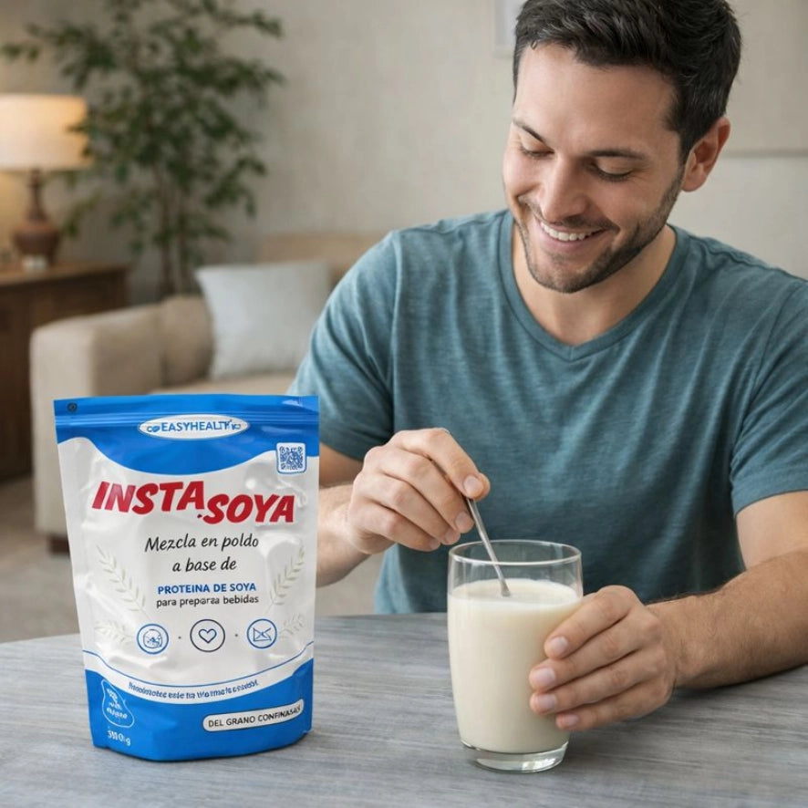 INSTA SOYA es una mezcla en polvo diseñada para optimizar la ingesta proteica vegetal, mejorar la digestibilidad y aportar nutrientes funcionales, utilizando tecnología de procesamiento para conservar las propiedades nutricionales de la semilla de soya.